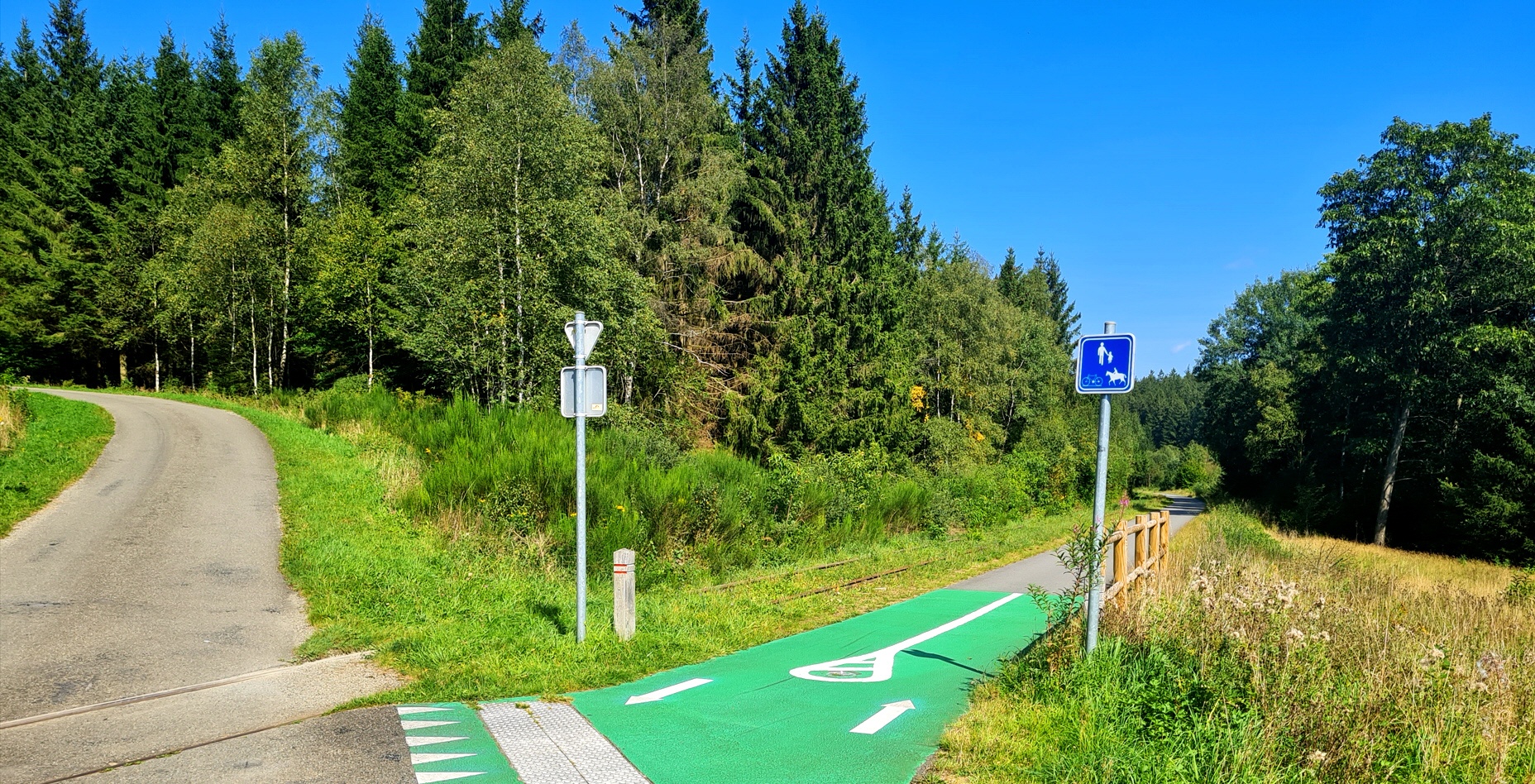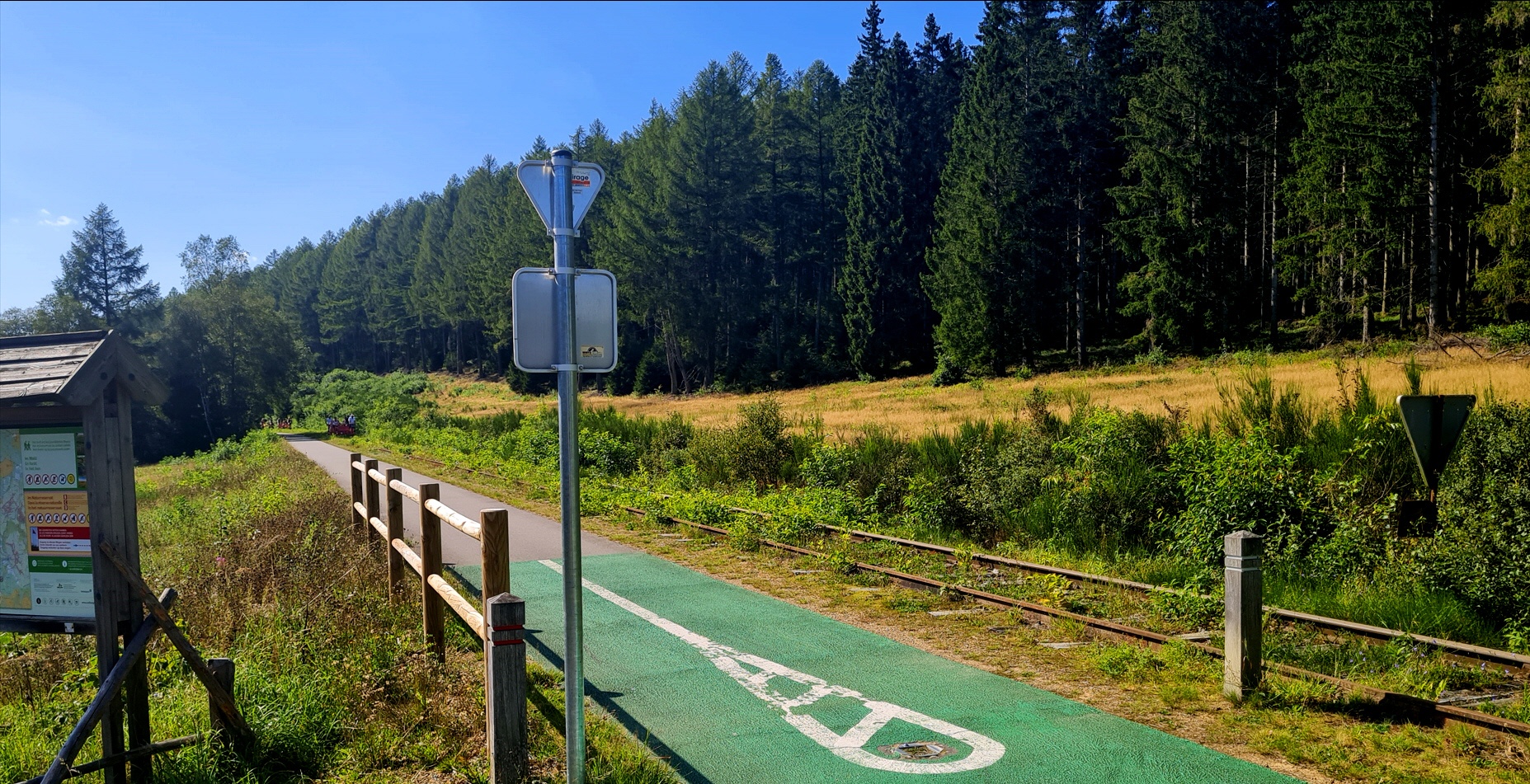 Direkt hinter der Ortschaft folgt die Grenze nach Belgien, die wir als Chance nutzen, um auf den Vennradweg zu kommen. Dieser Fernradweg kann noch sehr viel weiter nach Belgien befahren werden, als hier dargestellt. Damit ergibt diese Tour an Entfernung weitere Möglichkeiten auch die 150 oder mehr Kilometergrenze zu durchstoßen. Auch eine zwei Tagestour ist möglich.