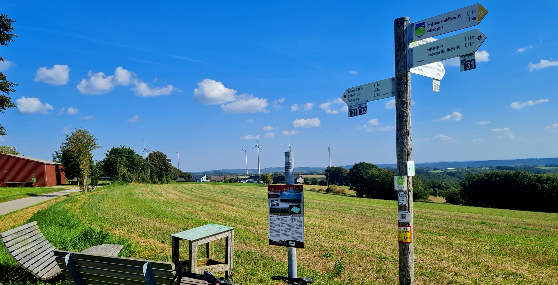Der Weg zum Salzberg ist steil und sehr direkt. Hinter Herhahn geht es weiter nach Dreiborn und zum Schleidener Windpark auf über 600 Meter Höhe und damit zum Dach der Tour. Ein neu angelegter Fahrradweg an der Bundesstraße macht so richtig Spaß an der Tour. So wünscht man sich das in der Umsetzung. Bald folgt der Abzweig zum Ort Kalterherberg. Der Name drückt aus, was hier Programm ist. Dieser schöne im Berg gelegene Ort dürfte einer der kältesten Orte in NRW sein und hat auch im Sommer immer wieder eine kühle Überraschung parat.